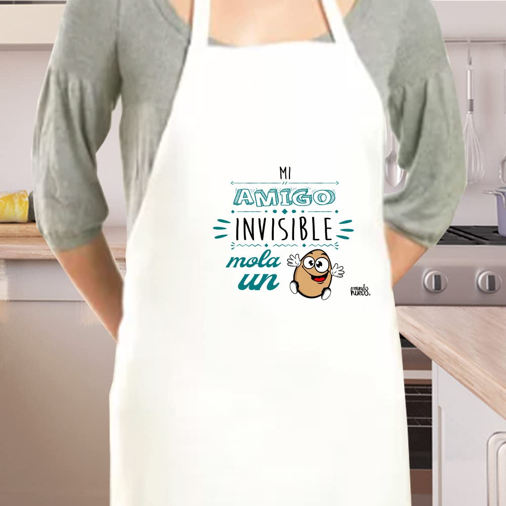 Delantal divertido, ideal para regalo amigo invisible | MI AMIGO INVISIBLE MOLA UN HUEVO | Regalo divertido, original y único para cumpleaños, celebraciones, reuniones, navidad...