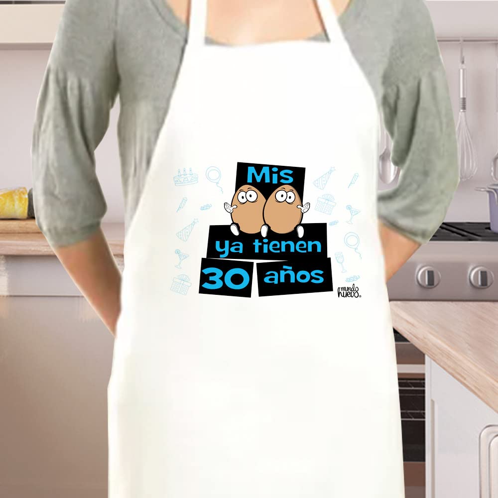 Delantal divertido, ideal para regalo cumpleaños | MIS HUEVOS YA TIENEN 30 AÑOS | Regalo divertido, original y único para cumpleaños, celebraciones, reuniones, navidad...