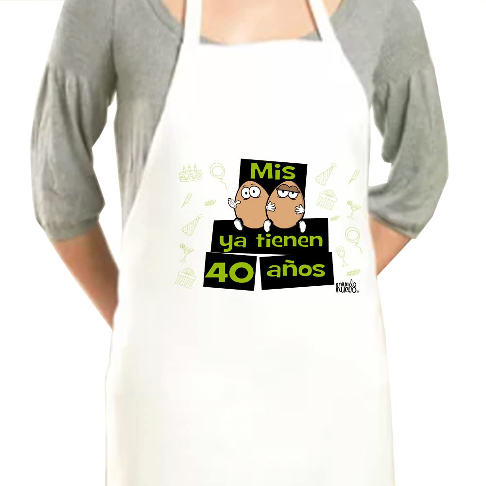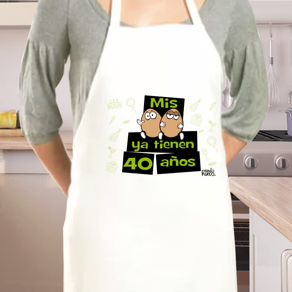 Delantal divertido, ideal para regalo cumpleaños | MIS HUEVOS YA TIENEN 40 AÑOS | Regalo divertido, original y único para cumpleaños, celebraciones, reuniones, navidad...