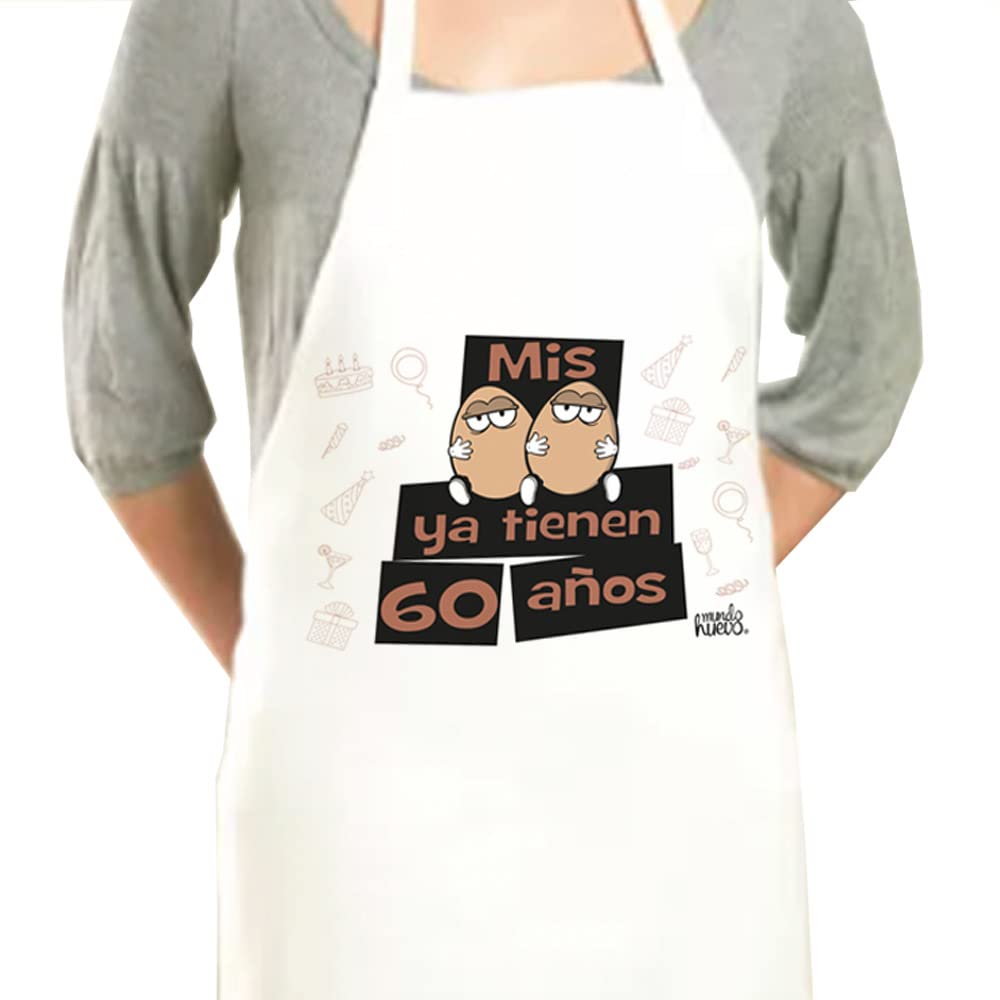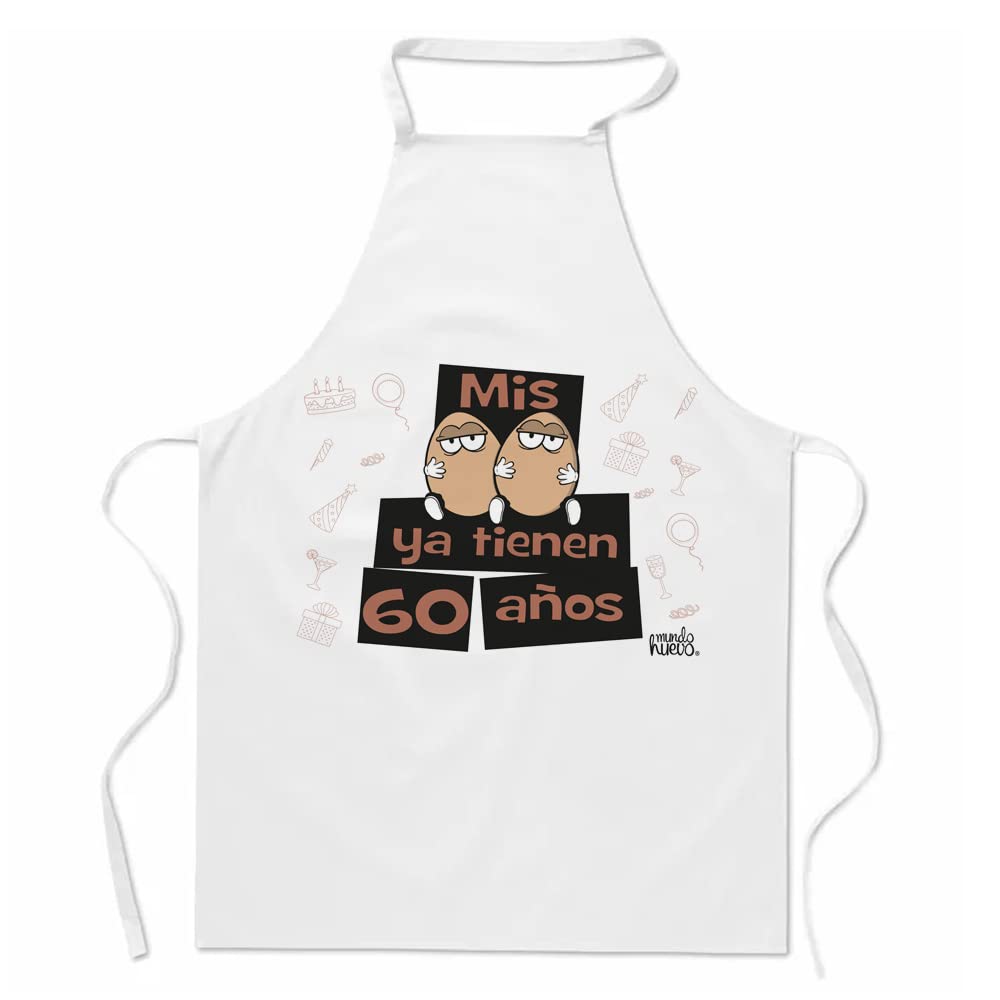 Delantal divertido, ideal para regalo cumpleaños | MIS HUEVOS YA TIENEN 60 AÑOS | Regalo divertido, original y único para cumpleaños, celebraciones, reuniones, navidad...