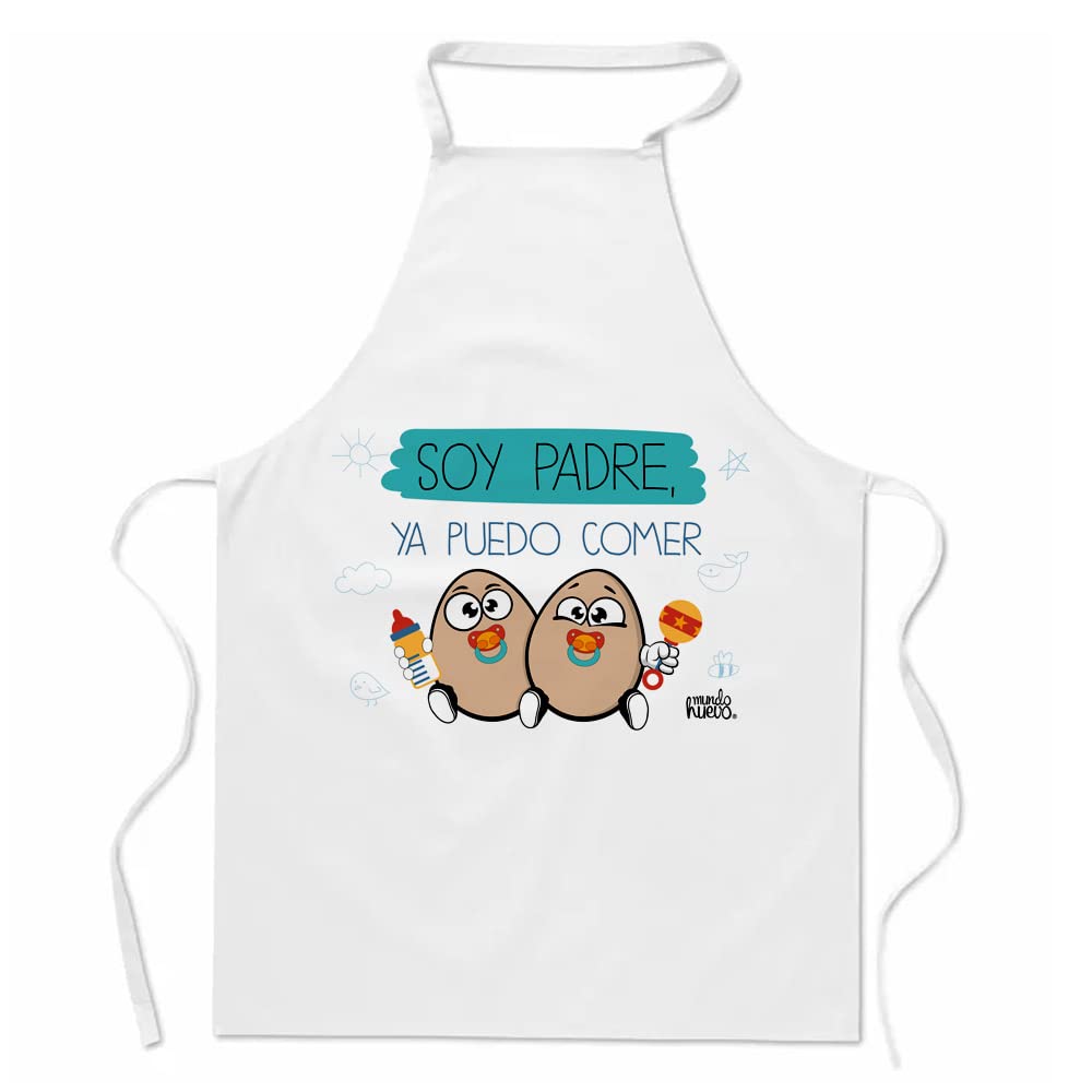 Delantal divertido, ideal para regalo padres | SOY PADRE YA PUEDO COMER HUEVOS | Regalo divertido, original y único para cumpleaños, celebraciones, reuniones, navidad...