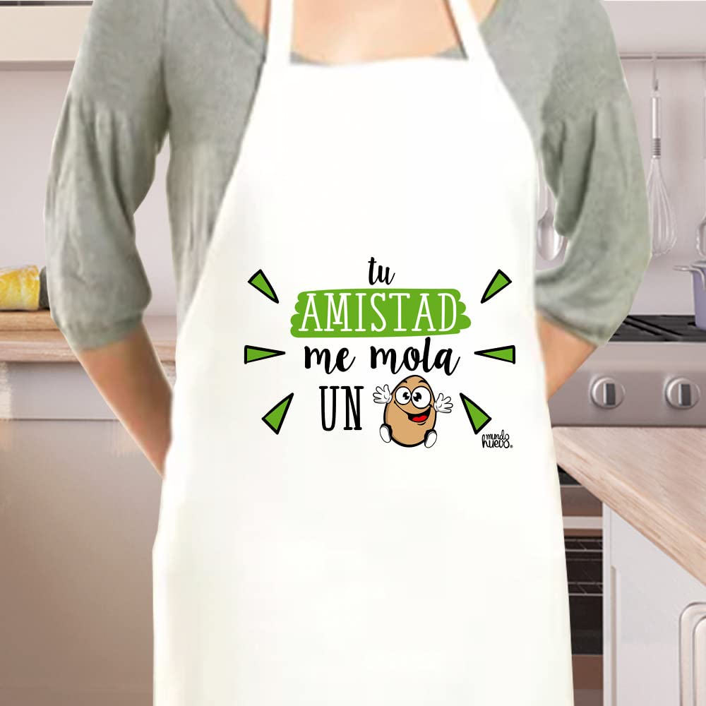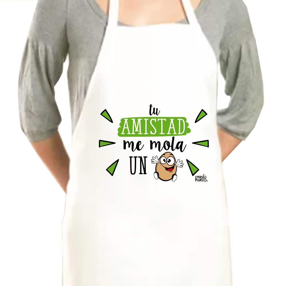 Delantal divertido, ideal para regalo | TU AMISTAD ME MOLA UN HUEVO | Regalo divertido, original y único para cumpleaños, celebraciones, reuniones, navidad...