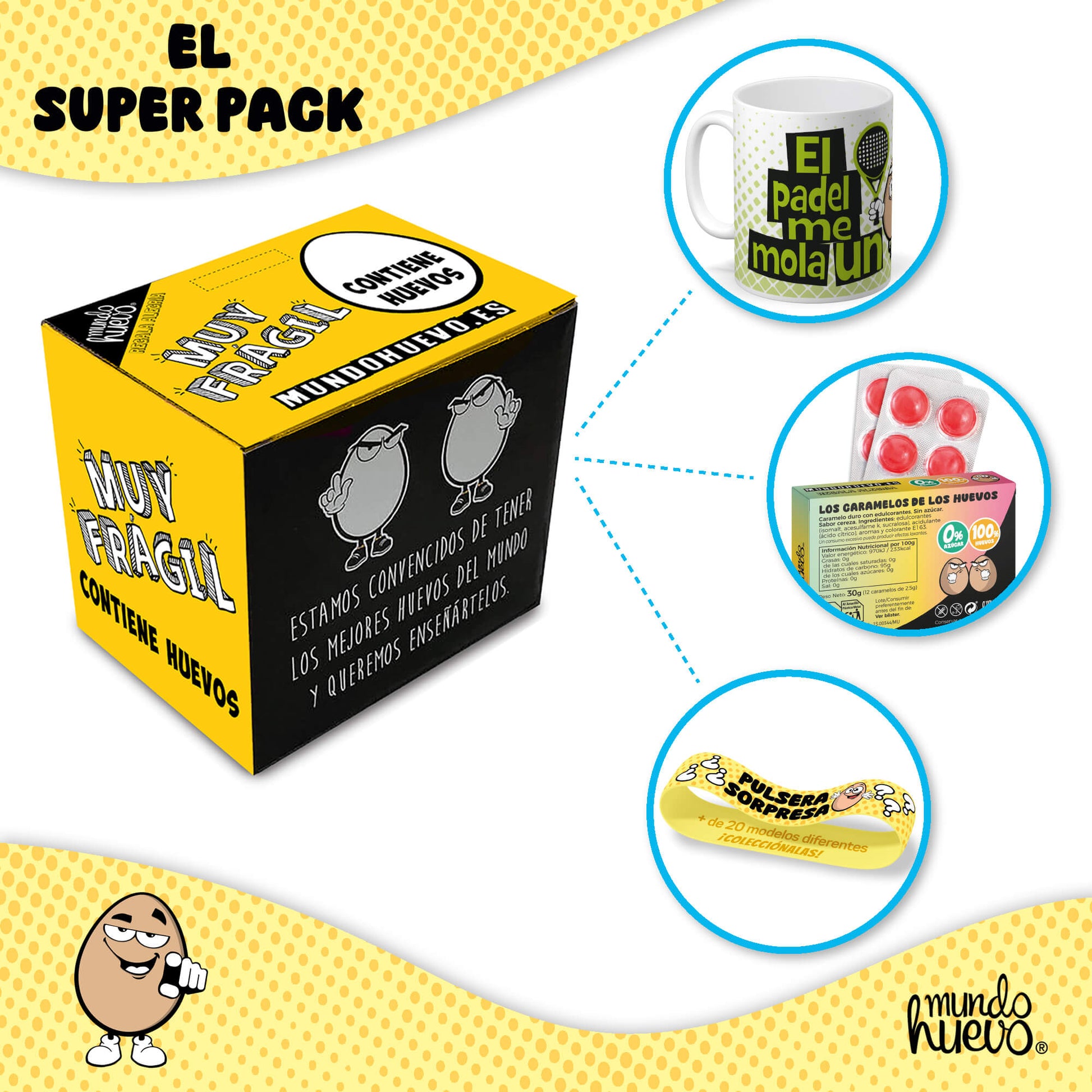 Taza El padel me mola un huevo + Caramelos divertidos + Pulsera sorpresa